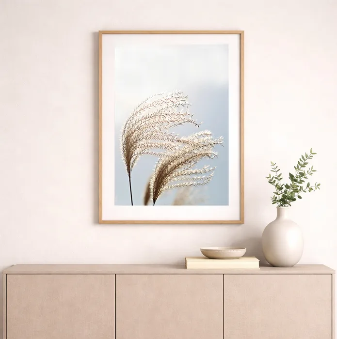 המציגה עשבוני פמפס בגווני בז' טבעיים ורכים.