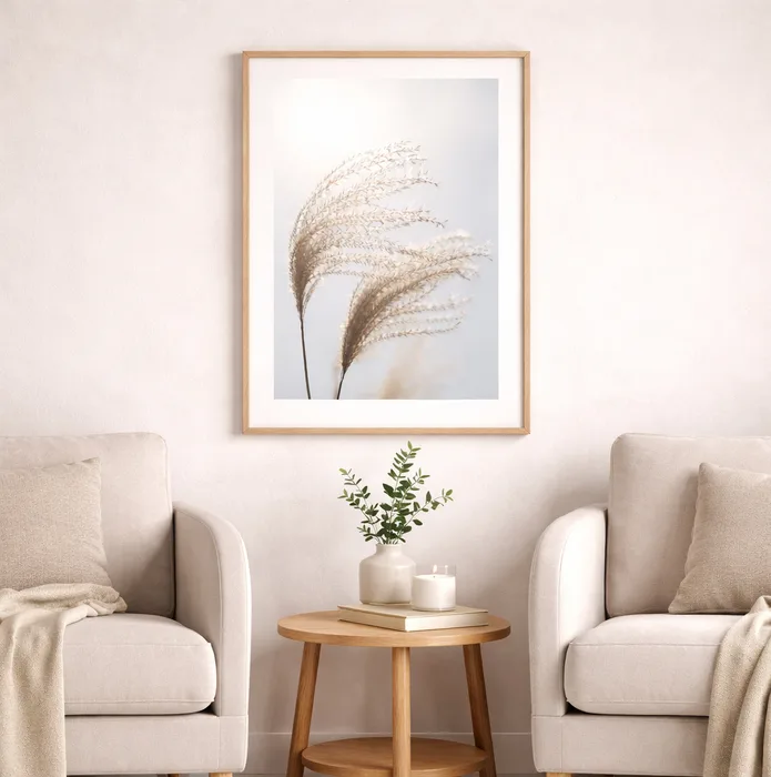 המציגה עשבוני פמפס בגווני בז' טבעיים ורכים.