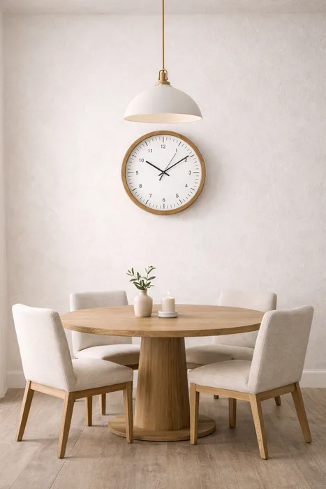 השעון משלב פונקציונליות מוקפדת עם אסתטיקה נקייה – פריט דקורטיבי שמדגיש קיר מרכזי בפינת אוכל, סלון או מעל קונסולה מעוצבת.