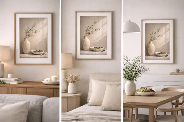 התמונה משדרת רוגע, עומק ואצילות על־זמנית, ומשתלבת באופן מושלם בחללים מודרניים, סקנדינביים וים־תיכוניים.